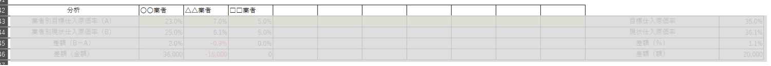 これらは、仕入原価管理表の「分析欄」で計算されます。