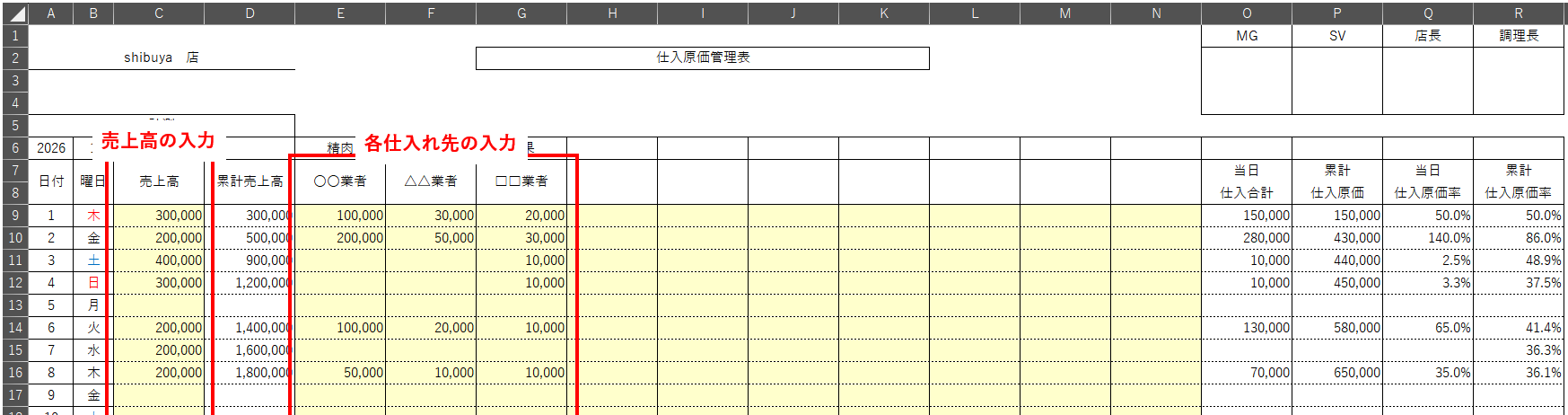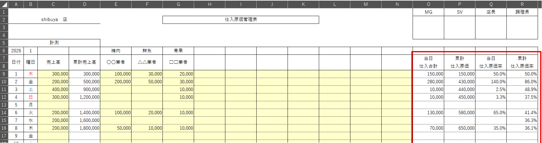 2026年版仕入原価管理表では、