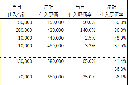 それにより、日々の仕入原価と原価率が随時計算されます。